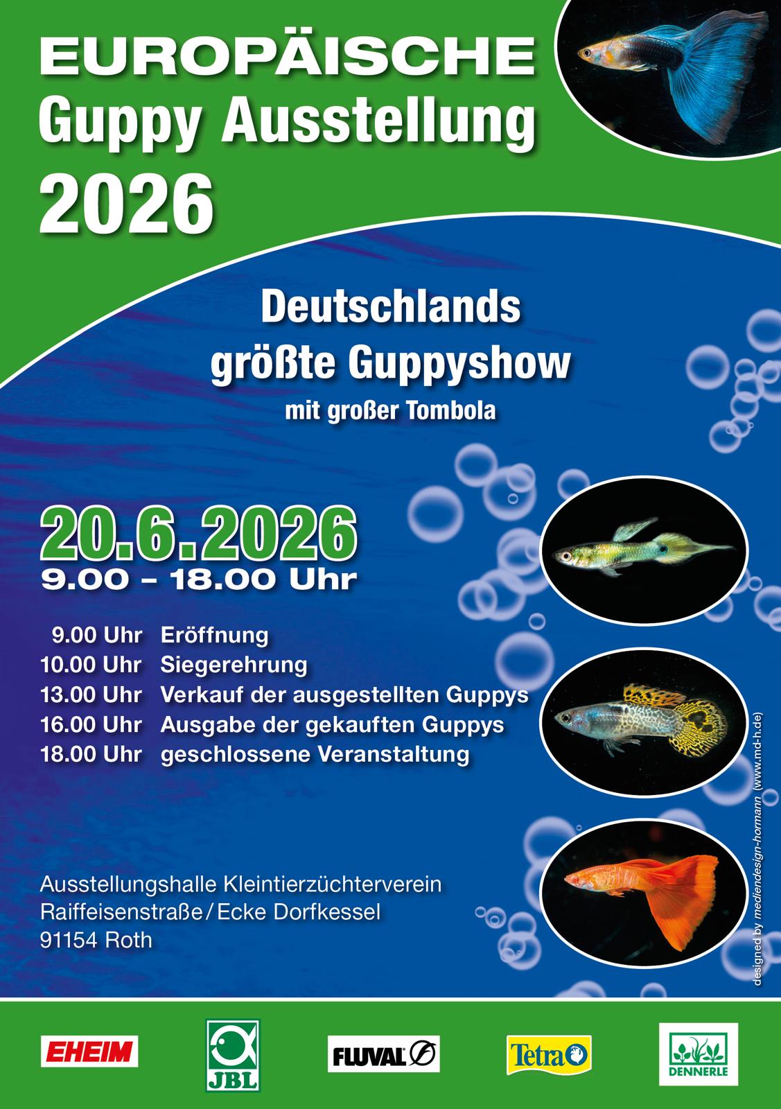 | 20.06.2026 (Deutschland) | Unsere große Guppy-Ausstellung in 91154 Roth / Eckersmühlen (nahe Nürnberg) | Flyer Einladung Richter |